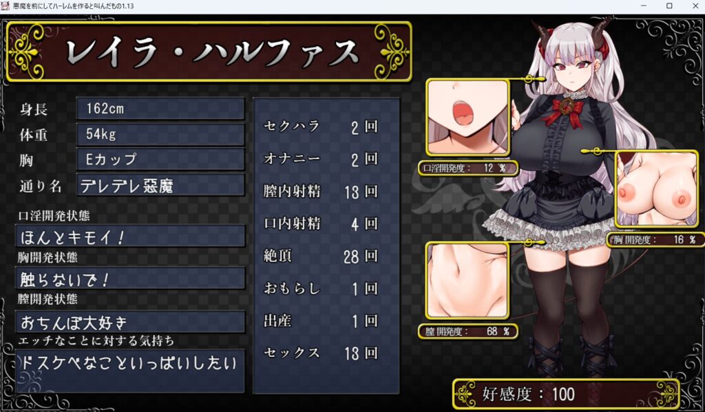 クリアと回想埋めを優先したせいで、好感度とそれぞれの性感帯の開発がアンバランスな状態になった。これはこれで。